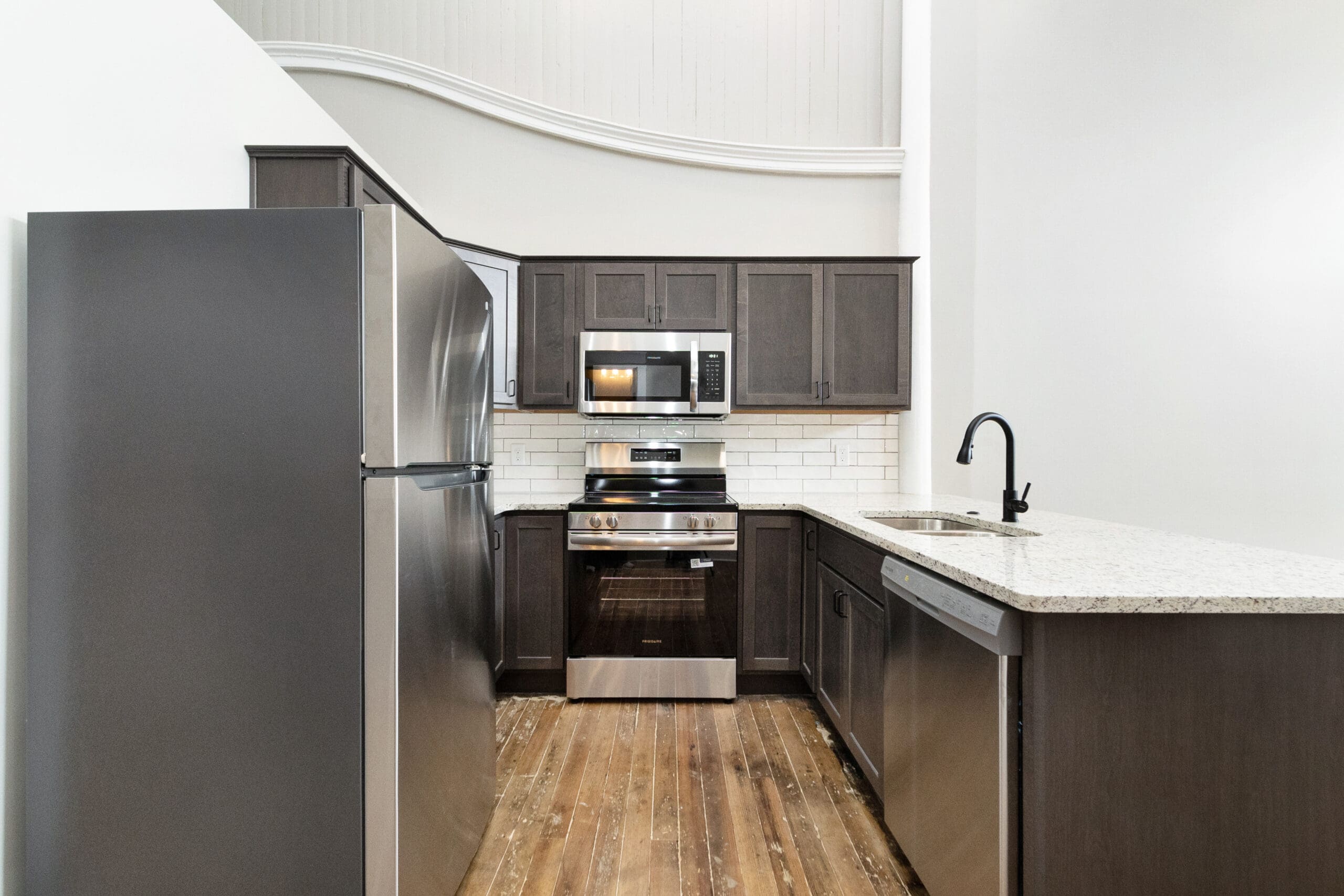 Challenges: Restoring the inefficiently designed 1970s apartment presented a number of challenges, particularly in navigating the layered history of the space. Working closely with KHRC, the City, and SHPO, we developed a thoughtful plan to reverse the unsympathetic 1970s alterations and restore the apartment to its original 1890s layout. This process required careful coordination to meet historic preservation standards while also adapting the space for modern use. Dividing the apartment into two functional units involved creative design solutions, including opening a new window into the alley to bring in natural light. During demolition, we uncovered and salvaged original historic trim, which added authenticity and character to the finished restoration. The project demanded a balance between preservation, code compliance, and functionality—a complex but rewarding undertaking.